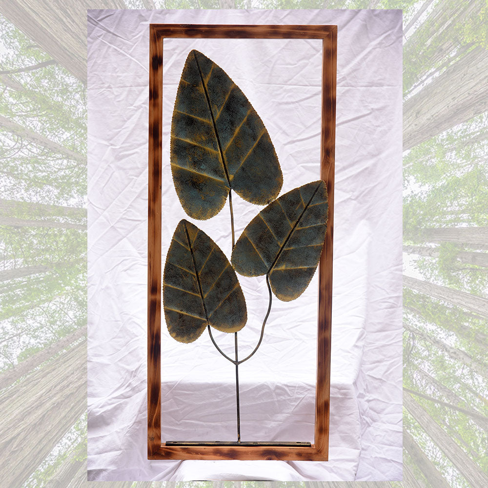 Handmade metal 3 Leaf Metal Frame artwork of a leaf can be a beautiful and unique addition to any home/office décor. This type of artwork can be displayed leaf up or leaf down, depending on personal preference and the look of the room.