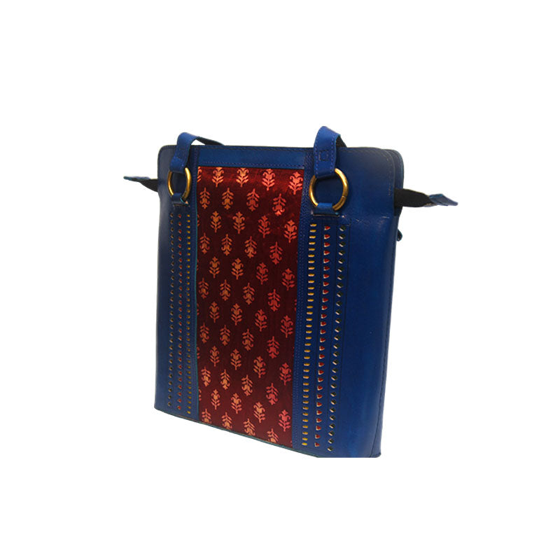 Blue and Burgundy Shoulder Leather Bag