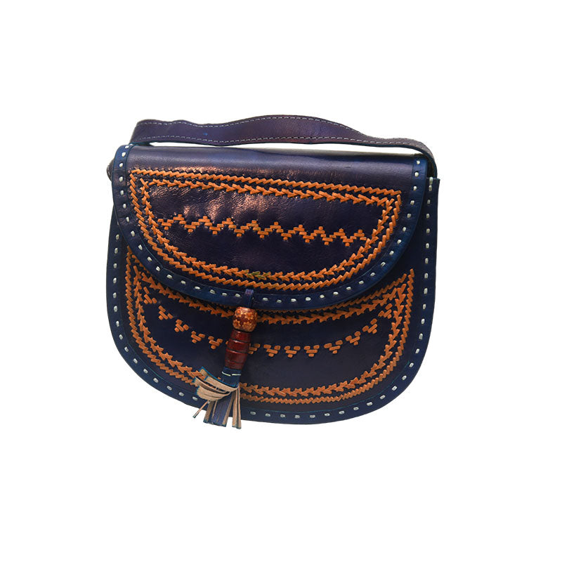 Blue Over-the-Shoulder Goats Leather Bag with flexible belt