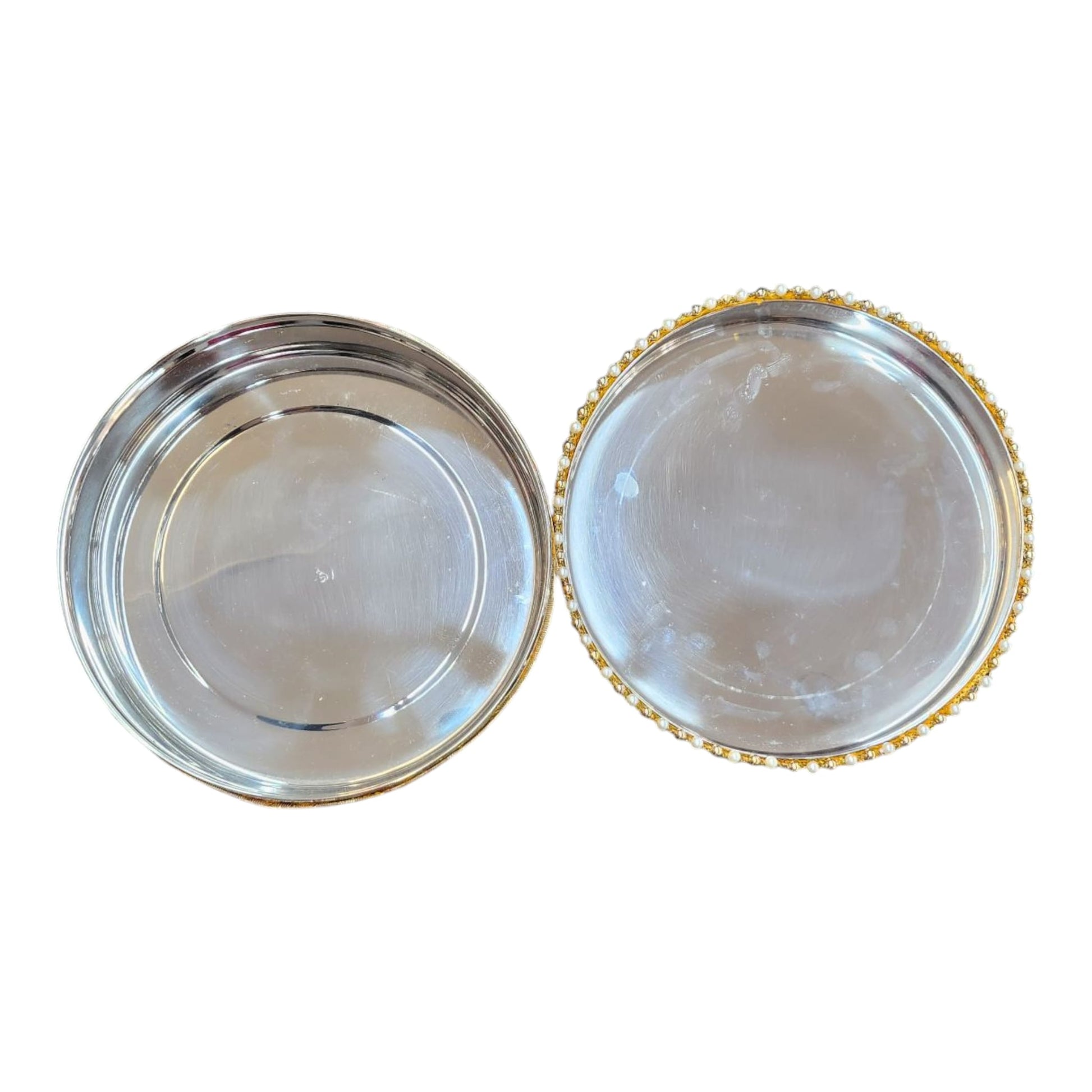 Add an air of luxury and tradition to your gifting experience with our Decorated Stainless Steel Papad Dabba. Designed for both functionality and elegance, this decorative box is a perfect choice for Indian weddings, festivals, or any special occasion where you want to present gifts, dry fruits, sweets, or even decorative items.