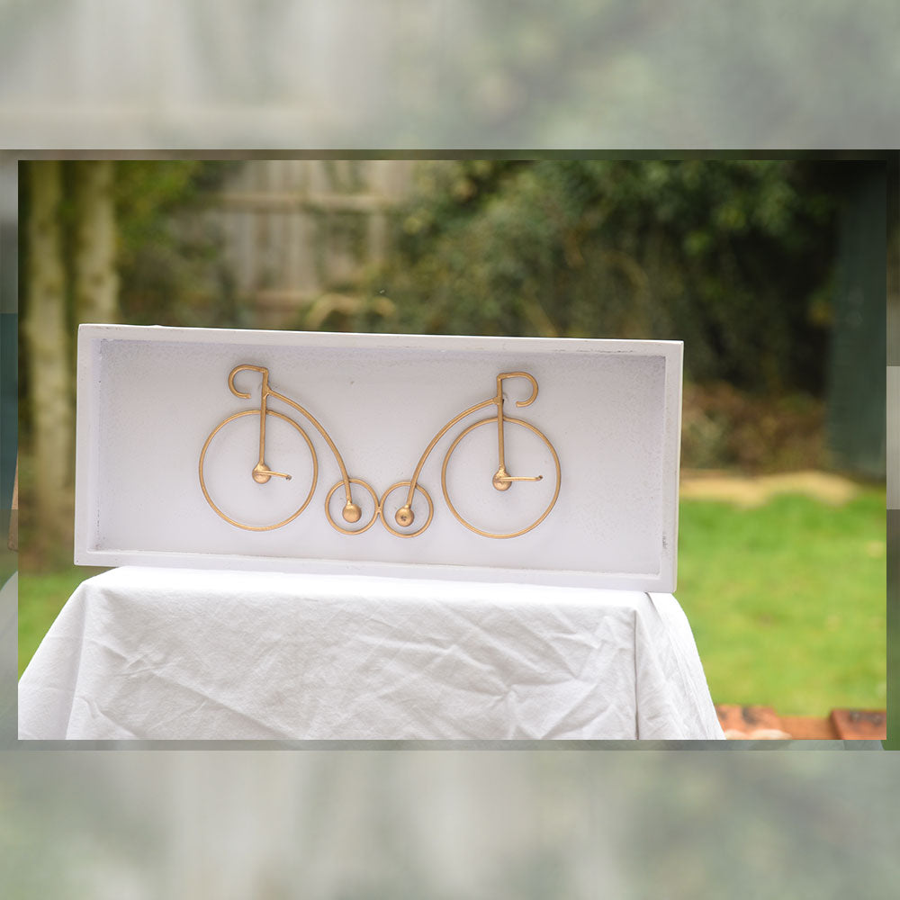 Photo frame artwork featuring a handmade gold bicycle which is one-of-a-kind pieces. This can be a great way to support independent international artisian and find unique and personalized piece for your home or office.