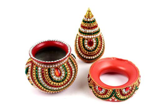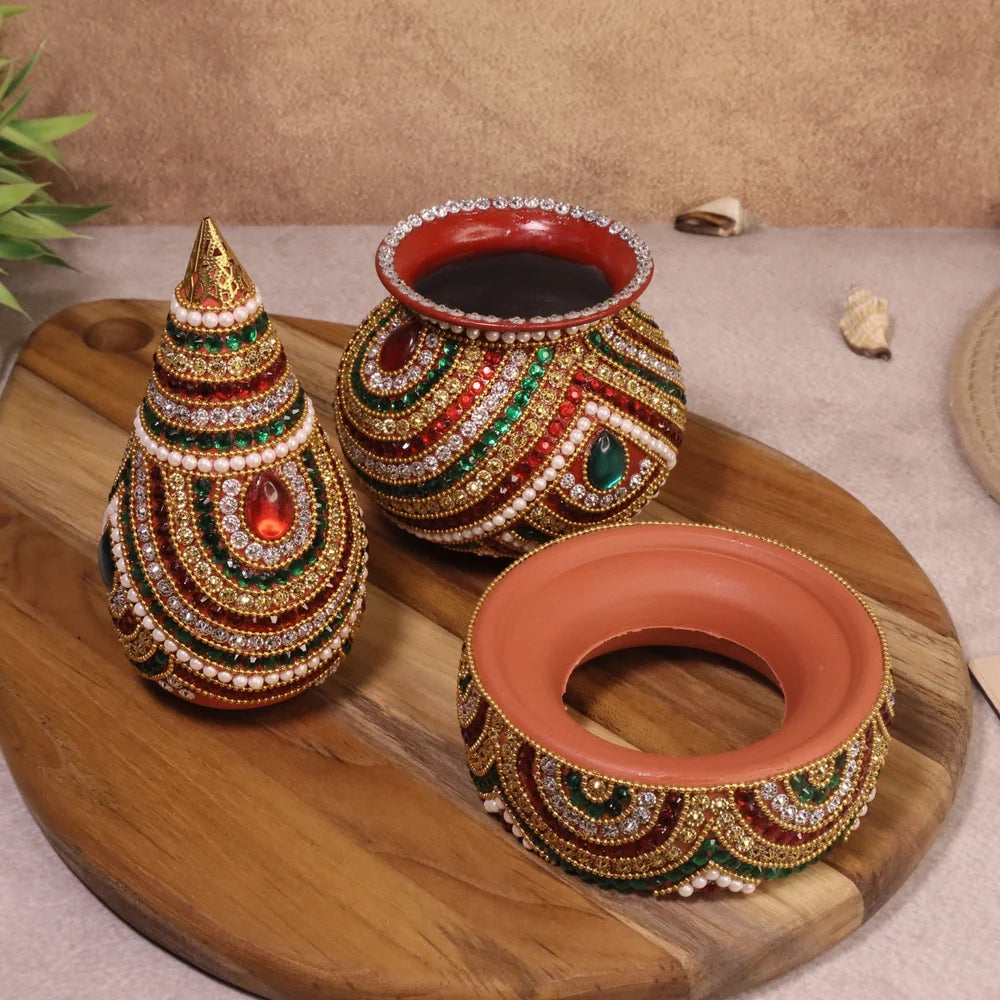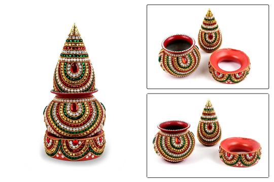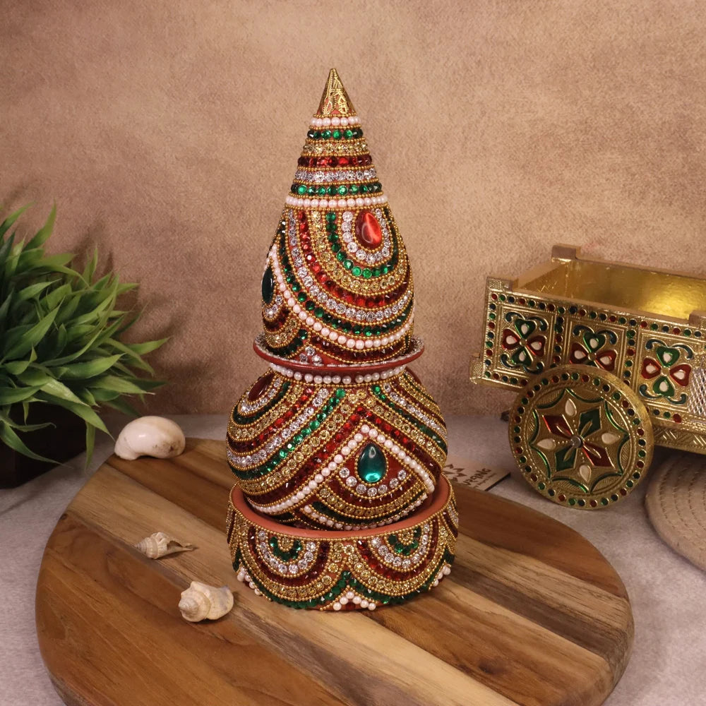 The Nariyal Var Bedu is an integral part of Gujarati weddings and is a symbol of prosperity and purity. This handmade gemstone studded version adds an extra touch of elegance and luxury to this traditional item, making it a perfect addition to your wedding celebration.