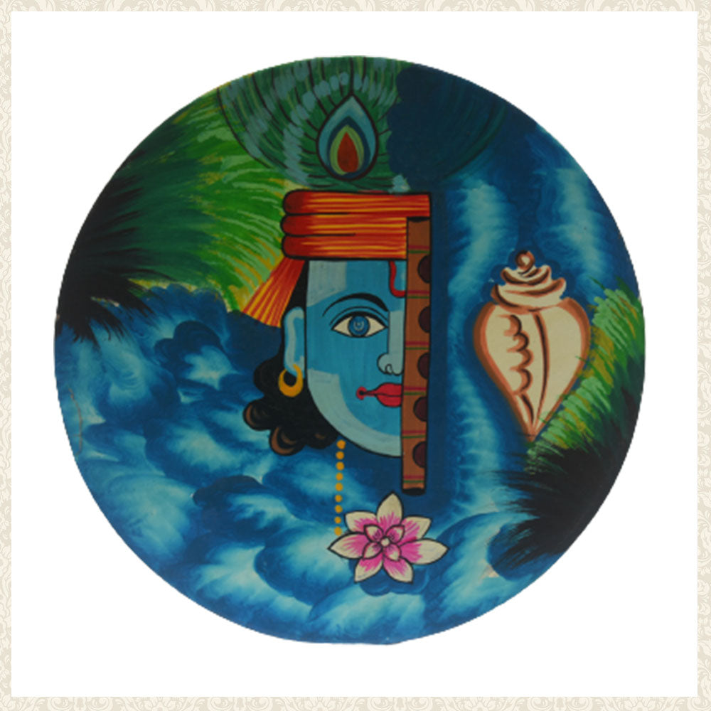 Hand Painted Wooden Wall Plate of Lord Krishna Design