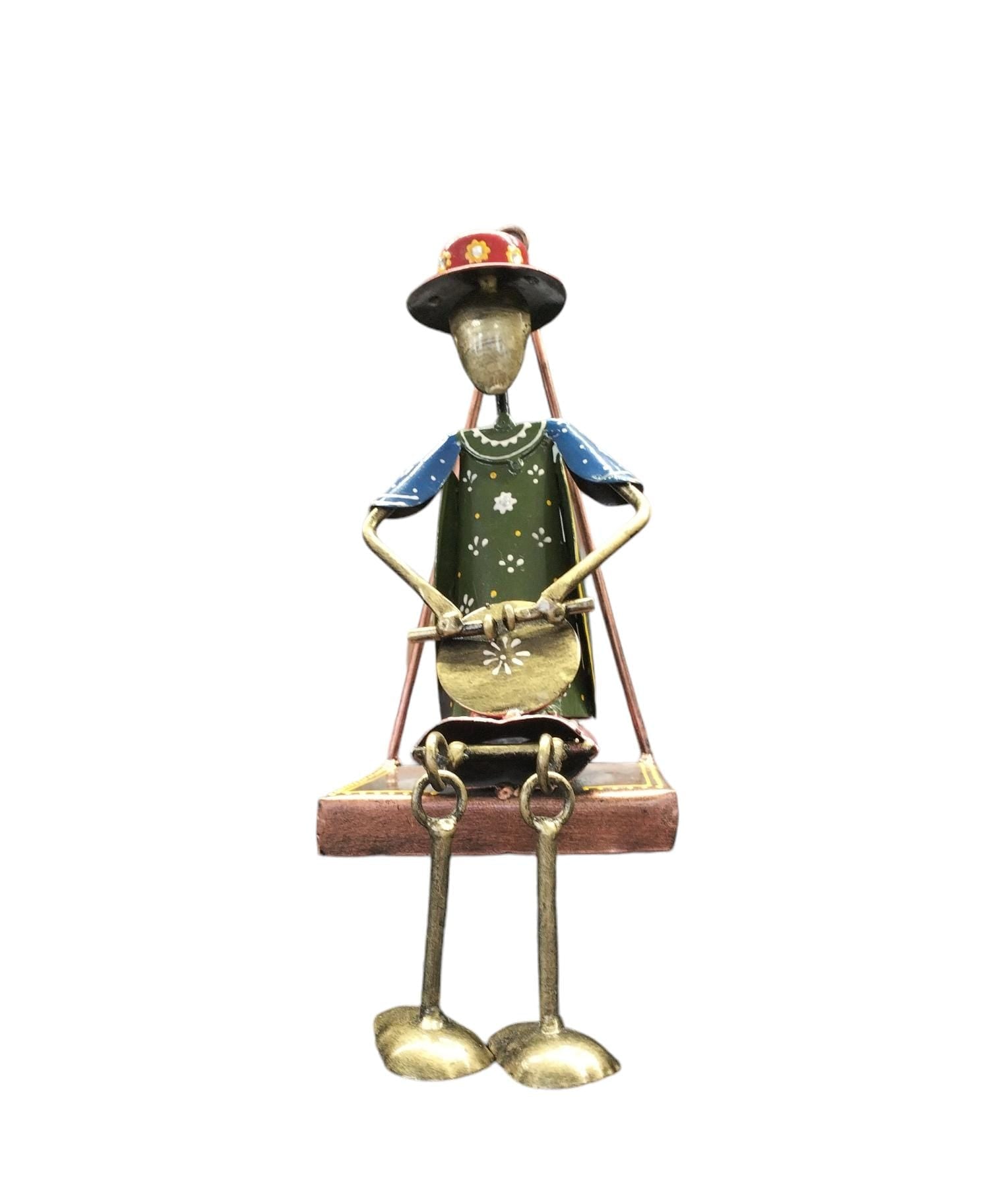 Musicians Sat with Legs Dangling Made in Metal is a charming and whimsical addition to any home. The detailed and intricate design showcases two musicians sitting with their legs dangling, each playing a different instrument, making it a unique and fun decorative piece.