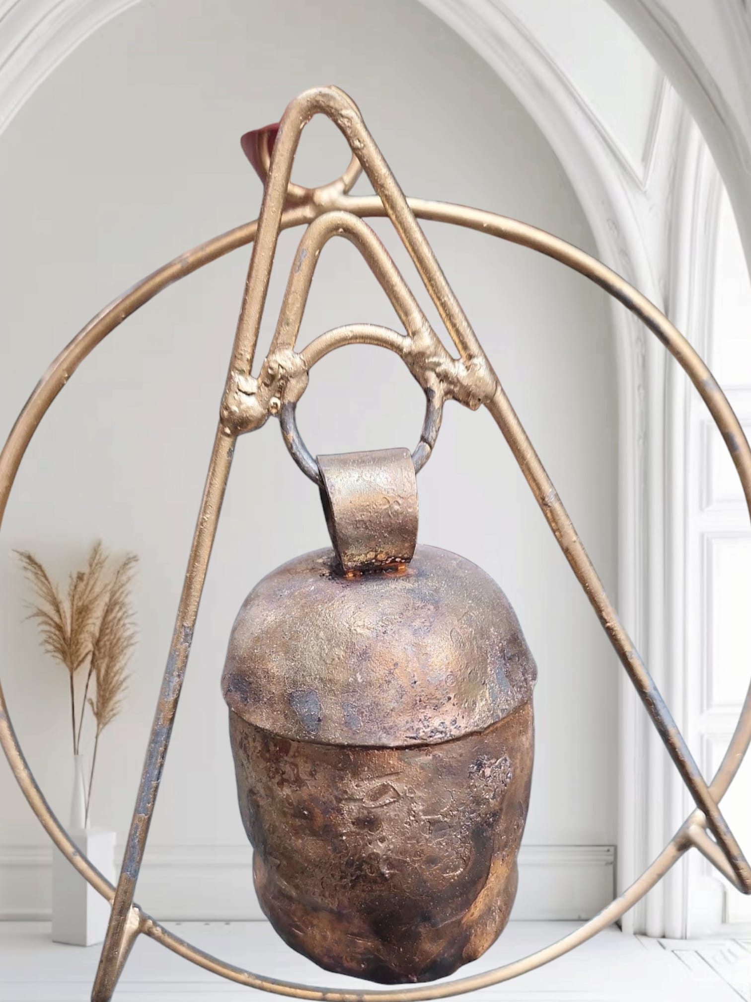 kgOur Artisian has made a hanging round single brass bell is designed to be hung from a rope or cord. It is made of brass, a metal alloy composed of copper and zinc that is known for its durability, strength, and malleability.
