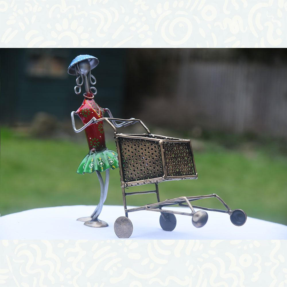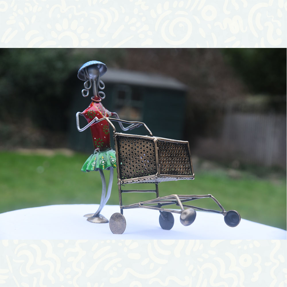 At Chamak we like to elevate your workspace or desk with our charming "Lady with Shopping Cart" Pen Holder or Card Holder. This delightful accessory not only keeps your essentials within reach but also adds a playful touch of whimsy to your surroundings. Let this artful piece be a conversation starter and a practical addition to your daily routine.