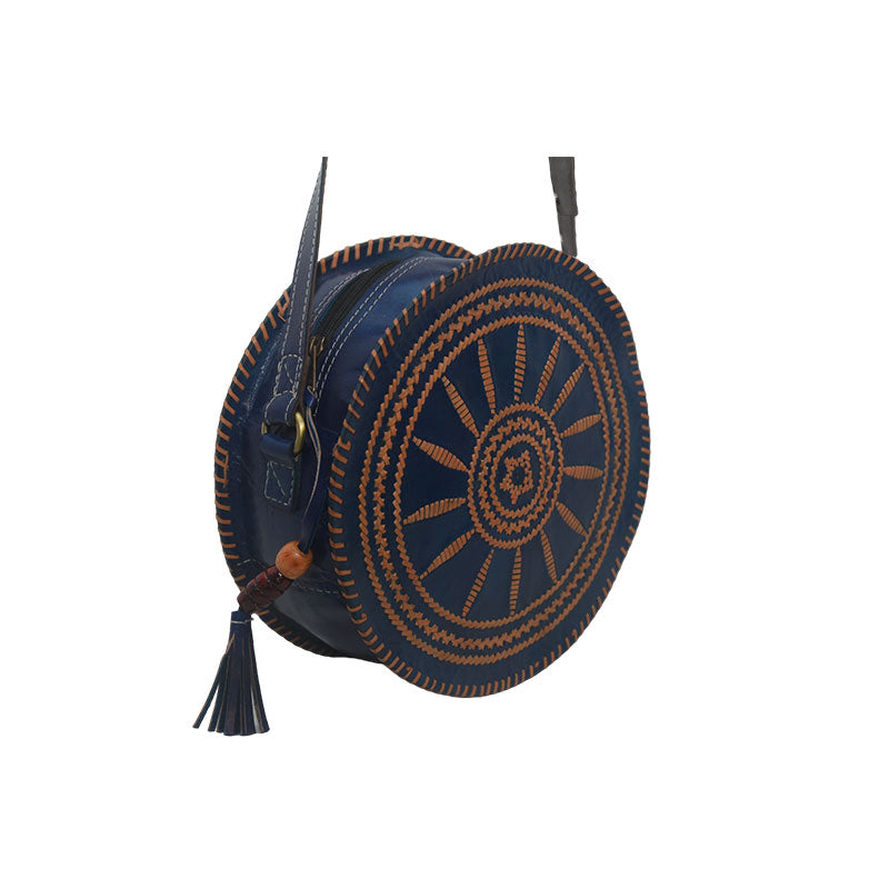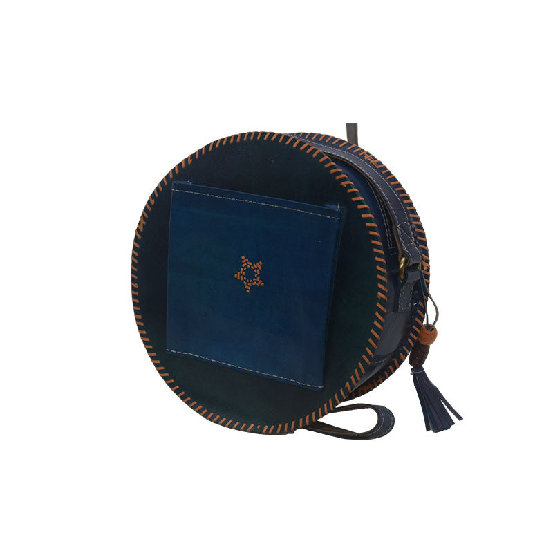 Stand out in the crowd with our unique blue round crossbody bag. The bag features a hand-stitched design that adds an artisanal touch to your outfit. No two bags are exactly alike, making each one a unique statement piece.