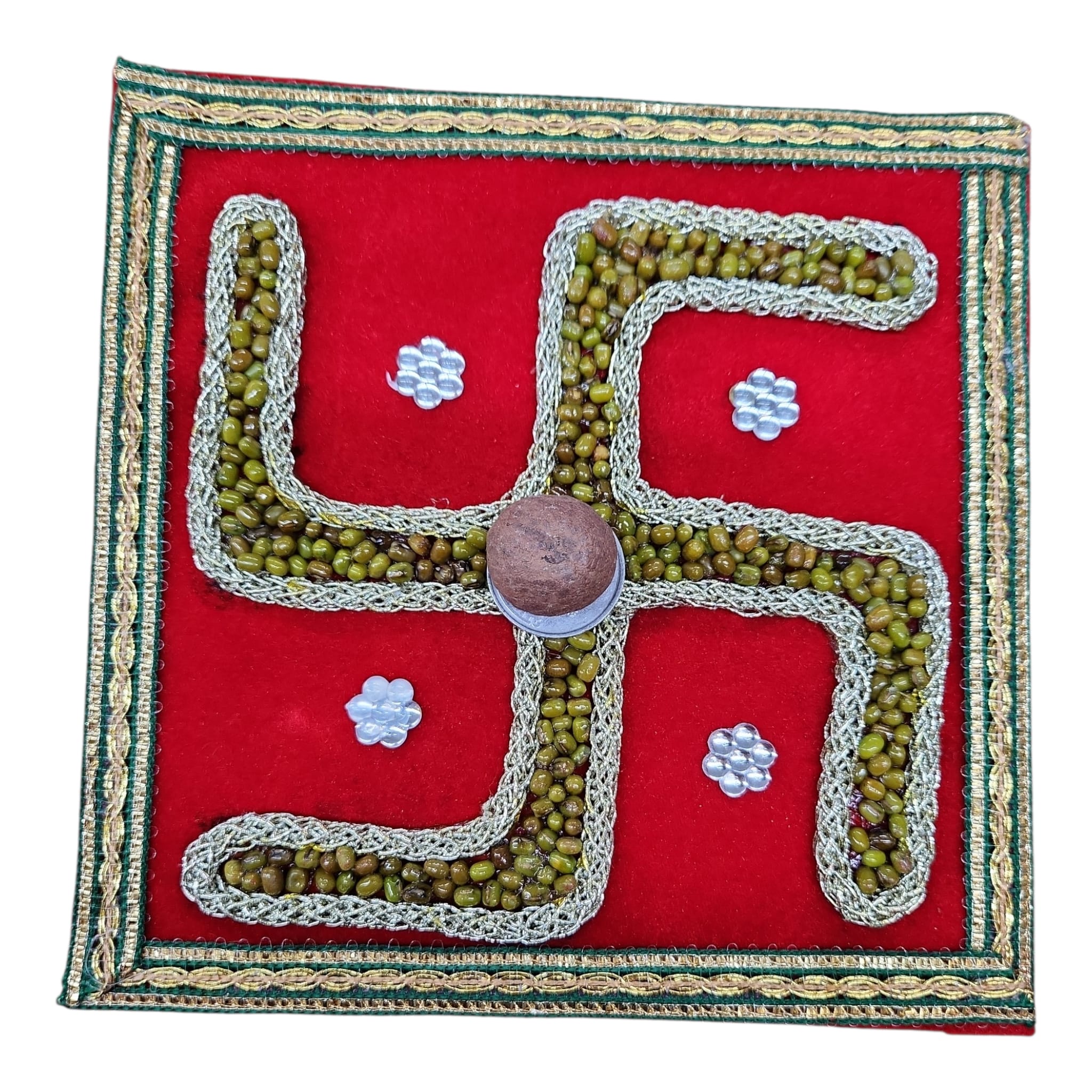 The Square Red Velvet Mag Saathiya is a beautiful piece of wedding decor that adds a touch of luxury and tradition to your special day. The red velvet fabric is soft to the touch and the intricate design adds an elegant touch to any wedding setting. The square shape of the Mag Sathiya makes it a versatile piece that can be used in various ways to create a stunning wedding decoration.