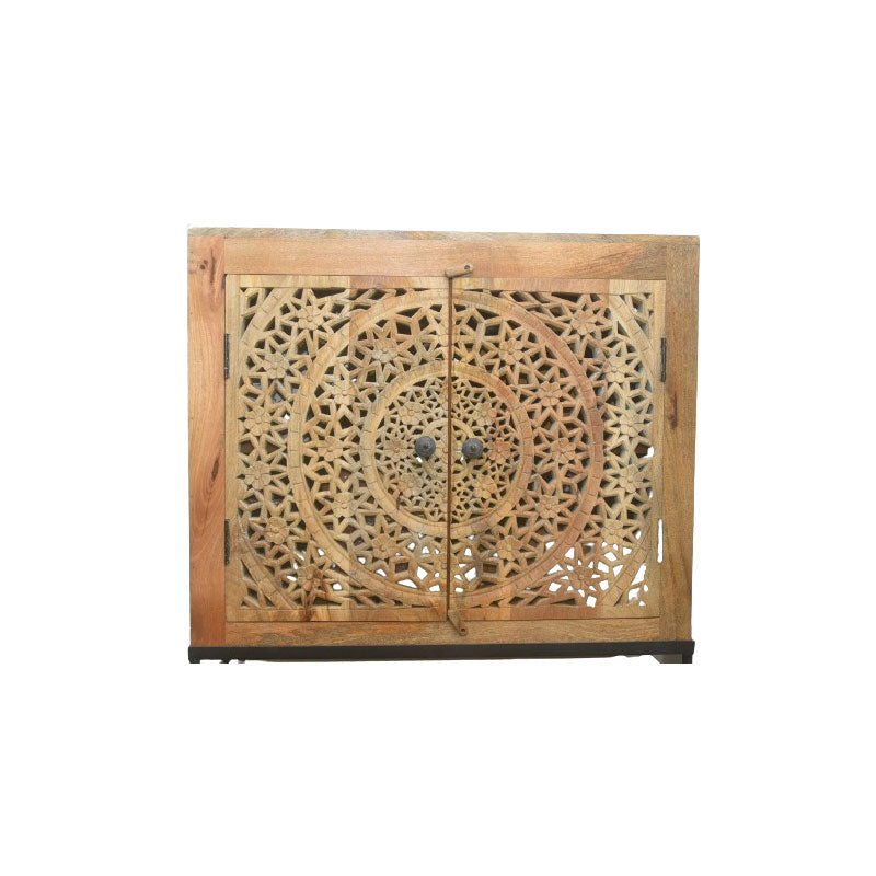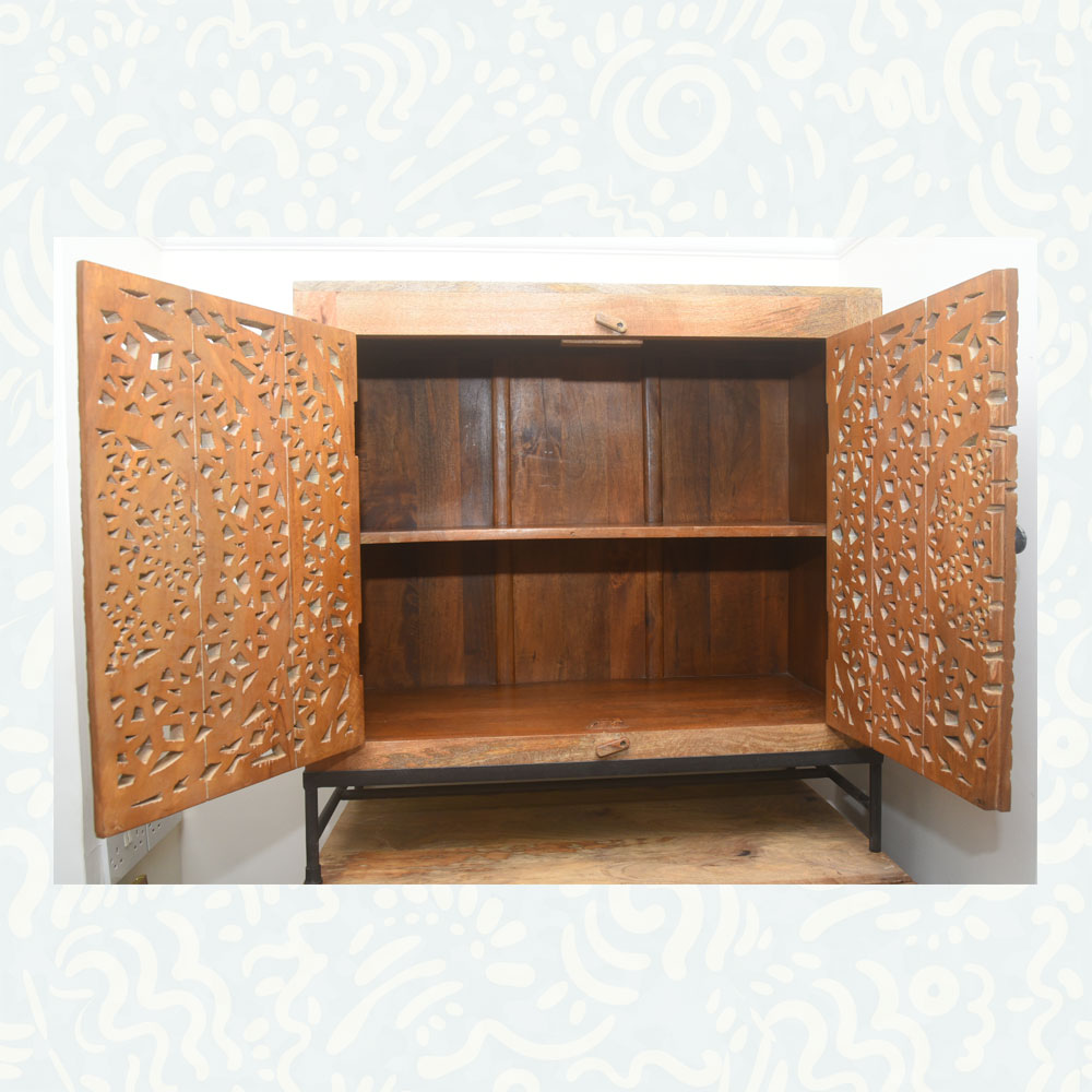 Upcycled Wooden Cupboard with Intricate Hand Carved Doors